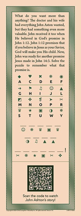 Take home item for the I Don't Want Your Money lesson. Children can solve the puzzle on the back to remember God's promise to them.