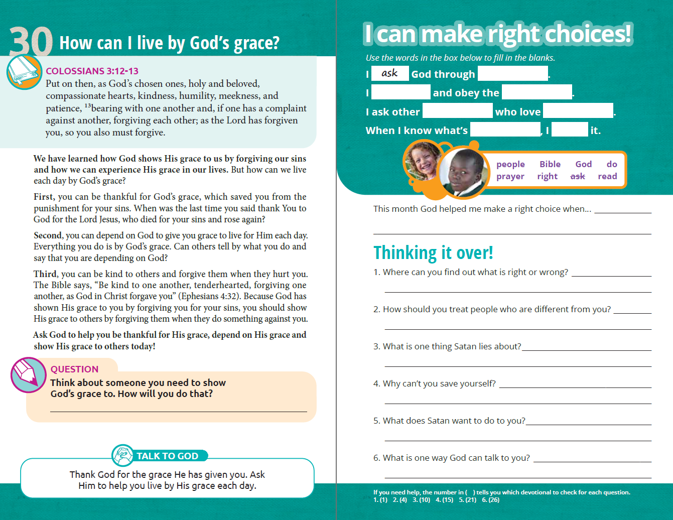 This 60-day devotional book for children ages 8-14 has a new Scripture passage on each page and encourages children to respond to what they read by praying in their own words.
