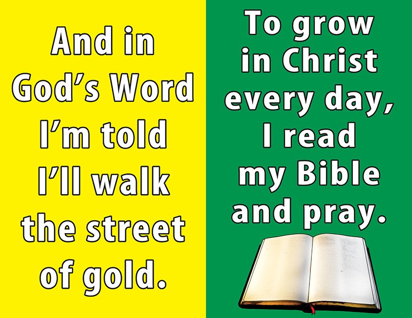 A favorite song that teaches Gospel truths, using the Wordless Book colors: gold, dark, red, clean, and green.